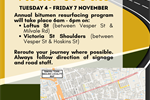 Annual Urban Bitumen Resealing Published on 28 October 2025 Temora Shire Council will continue its annual bitumen resurfacing program on Tuesday 4 November 2025, with works scheduled to run through to Friday 7 November 2025, weather permitting. Tagged as: , Media Releases